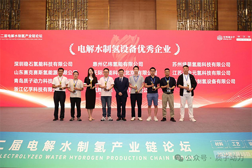 論壇結(jié)束后,舉辦了優(yōu)秀企業(yè)頒獎典禮,質(zhì)子動力榮獲“2024電解水制氫設(shè)備優(yōu)秀企業(yè)-綠氫榮耀獎”。